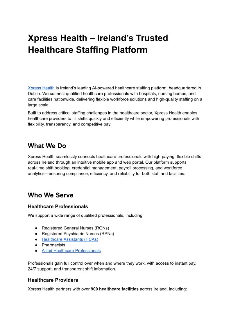 Xpress Health – Ireland’s Trusted Healthcare Staffing Platform