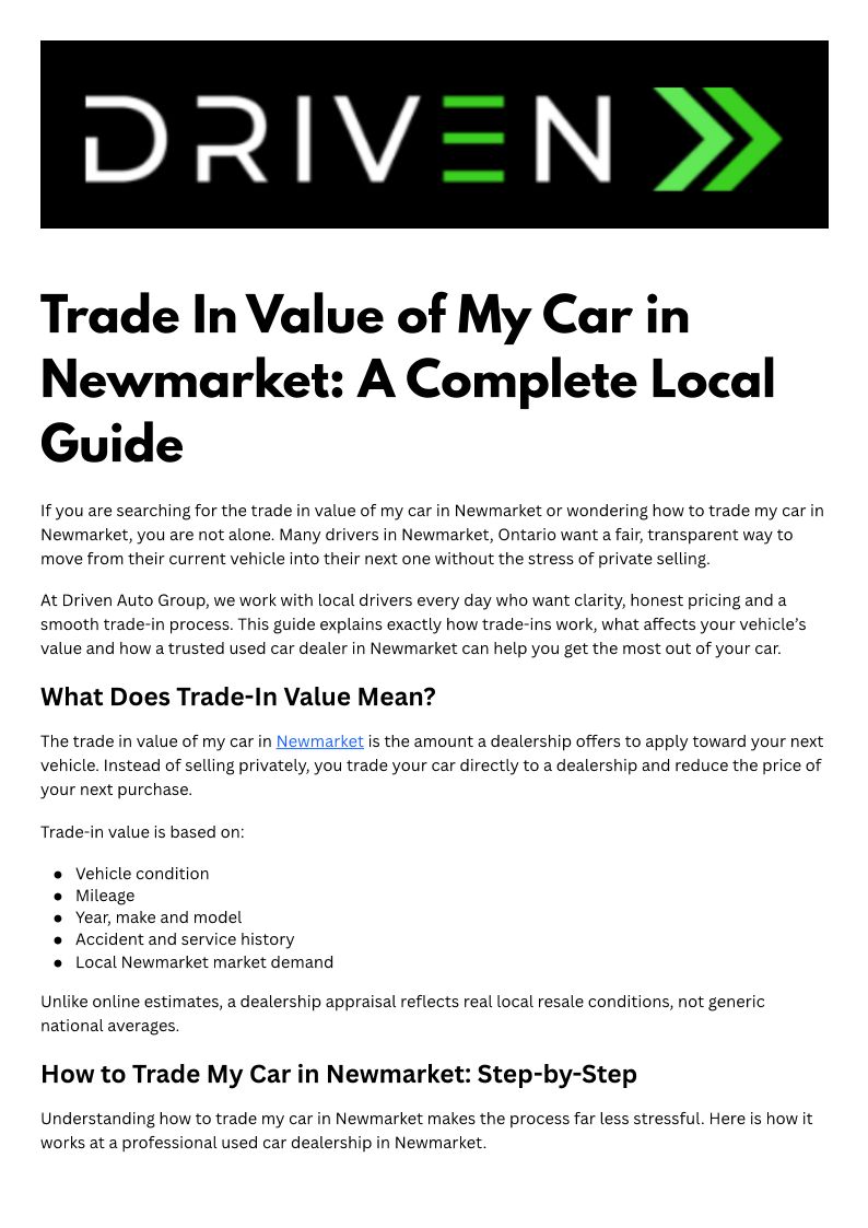 Trade In Value of My Car in Newmarket A Complete Local Guide by Driven Auto Group