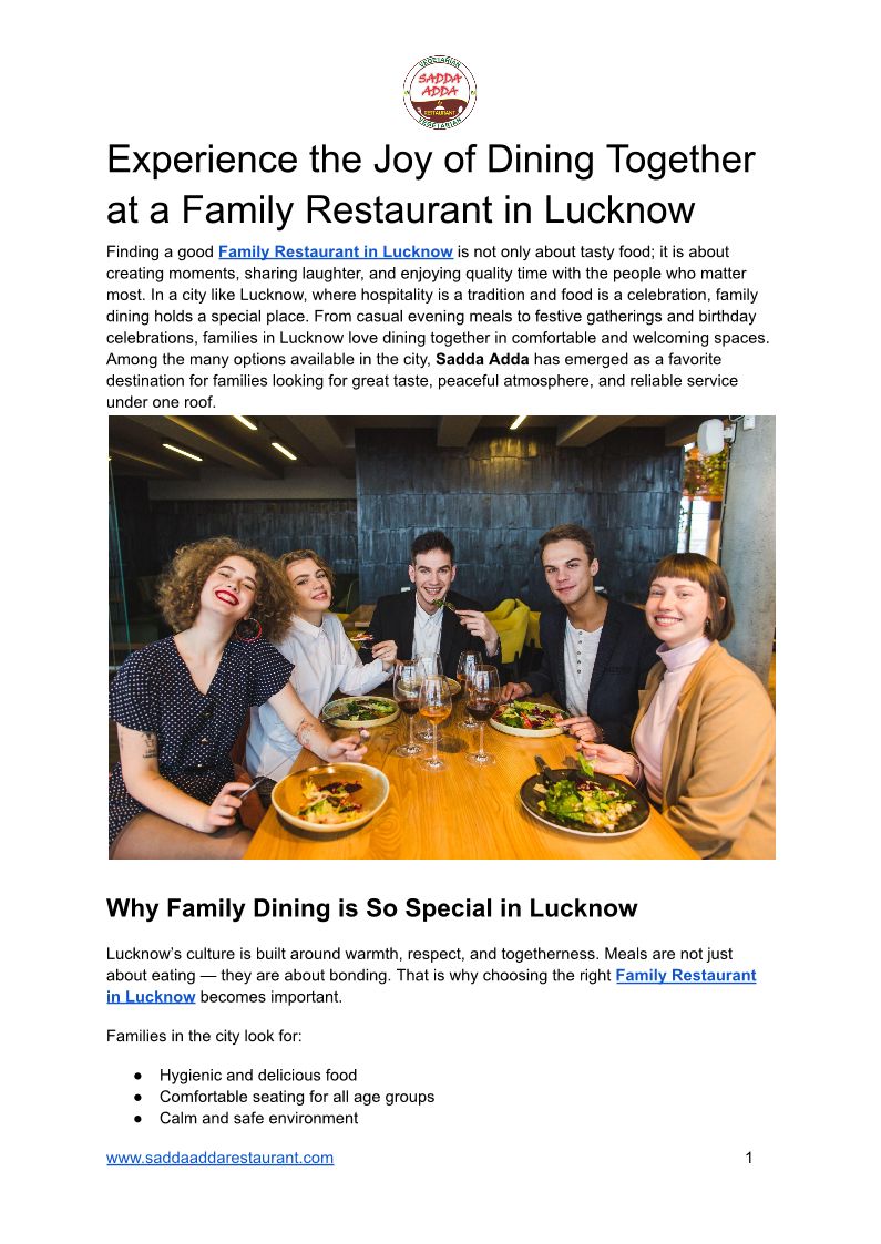 Experience the Joy of Dining Together at a Family Restaurant in Lucknow