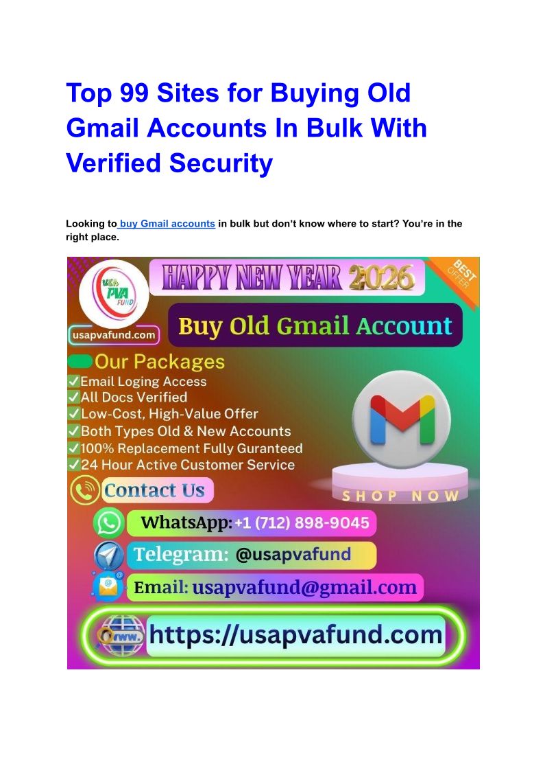 Top 99 Sites for Buying Old Gmail Accounts In Bulk With Verified Security