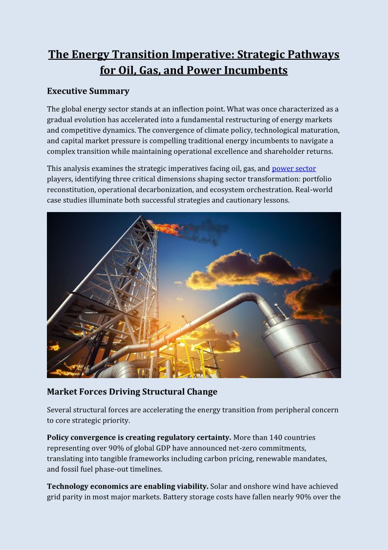 The Energy Transition Imperative Strategic Pathways for Oil Gas and Power Incumbents