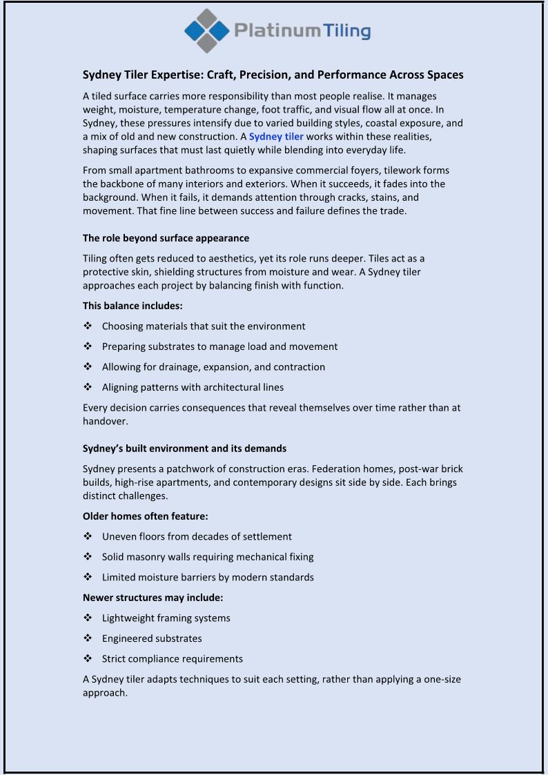 Sydney Tiler Expertise and Craft, Precision, and Performance Across Spaces