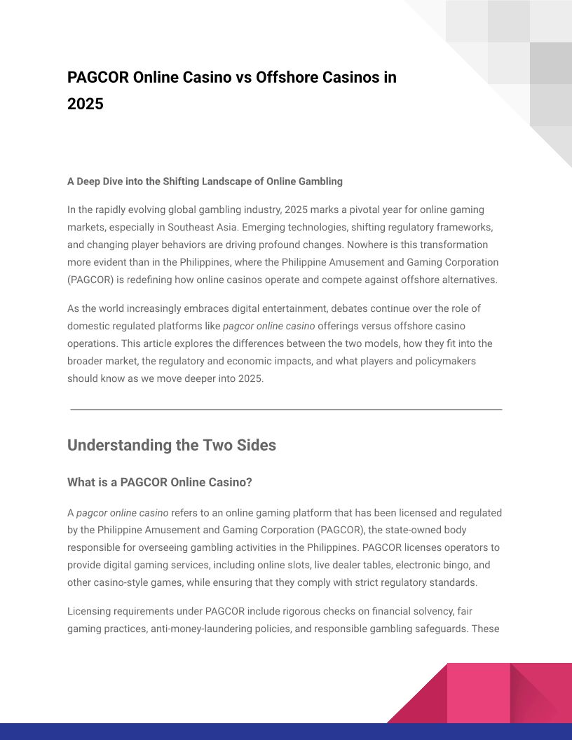 PAGCOR Online Casino vs Offshore Casinos: Key Differences and 2025 Trends