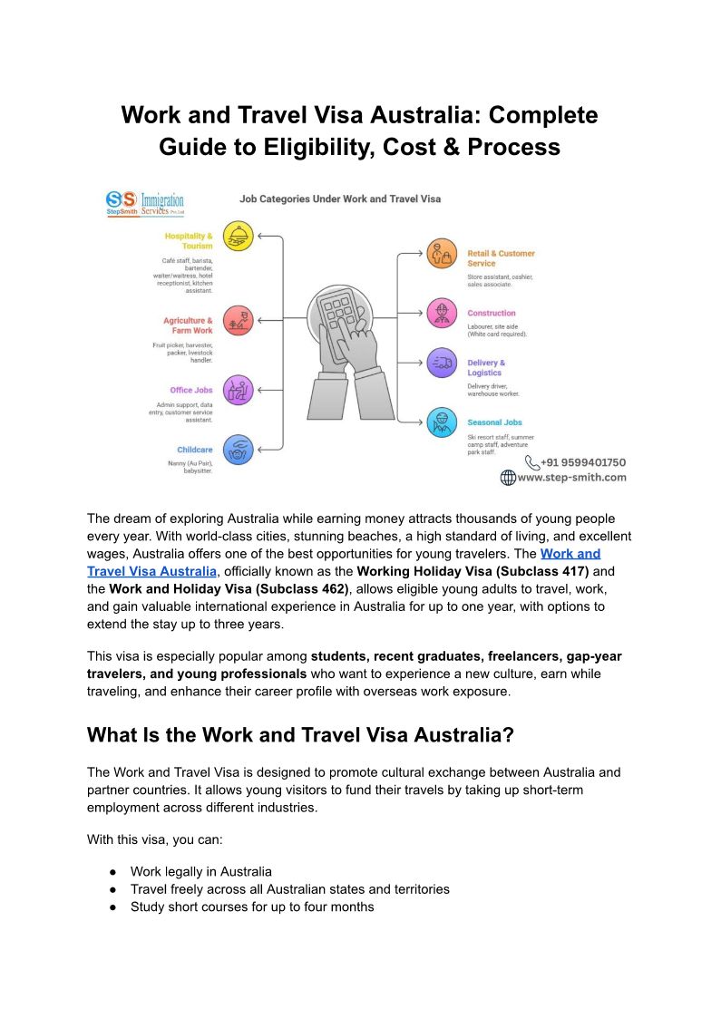 Work and Travel Visa Australia Complete Guide to Eligibility, Cost & Process