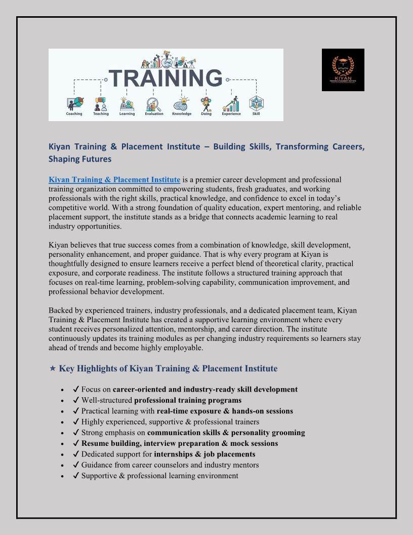 Kiyan Training & Placement Institute – Building Skills, Transforming Careers, Shaping Futures