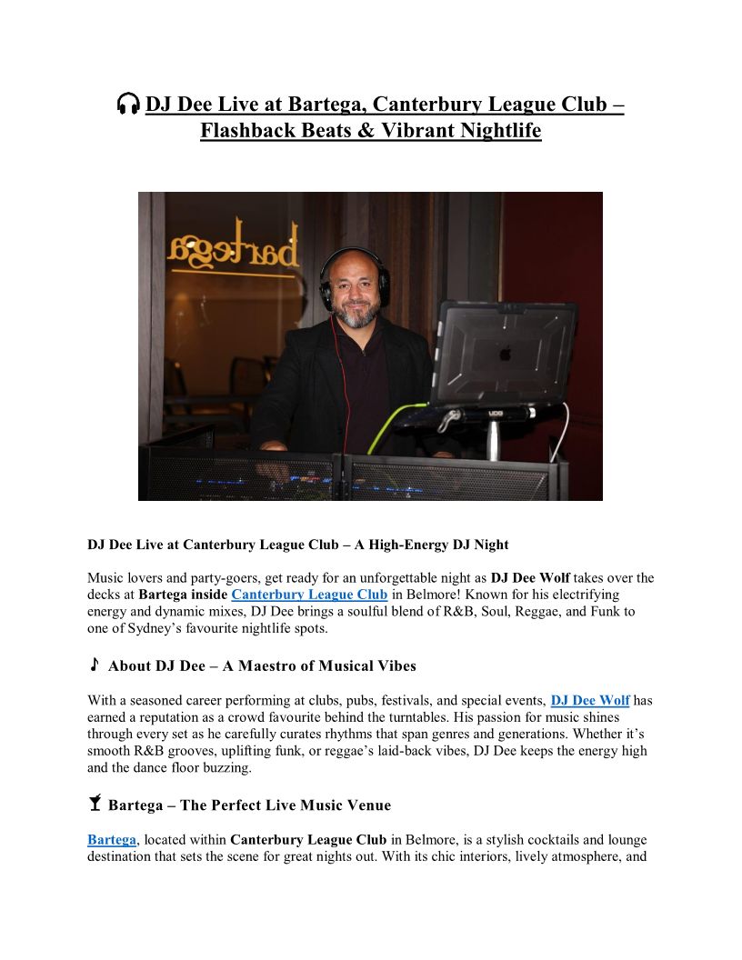 Experience DJ Dee at Bartega, Canterbury League Club Sydney