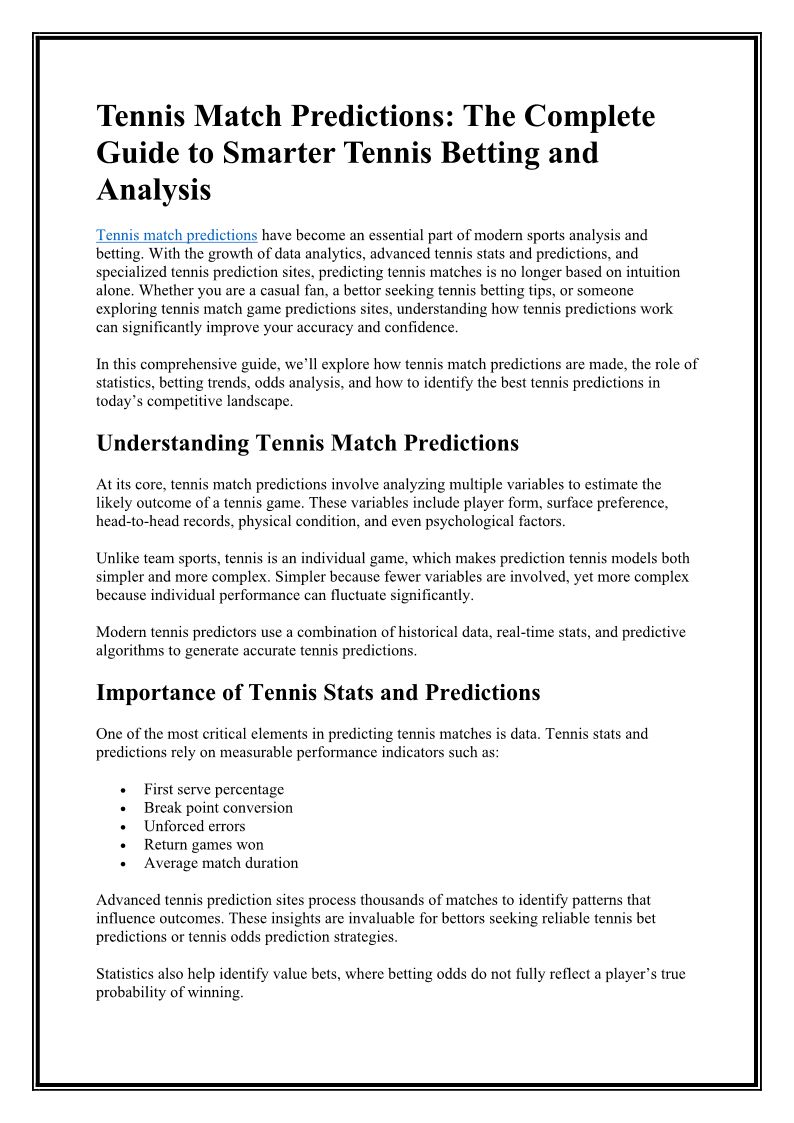 Tennis Match Predictions: The Complete Guide to Smarter Tennis Betting and Analysis