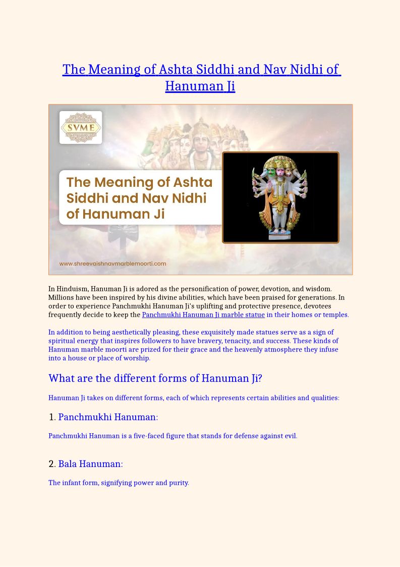 The Meaning of Ashta Siddhi and Nav Nidhi of Hanuman Ji