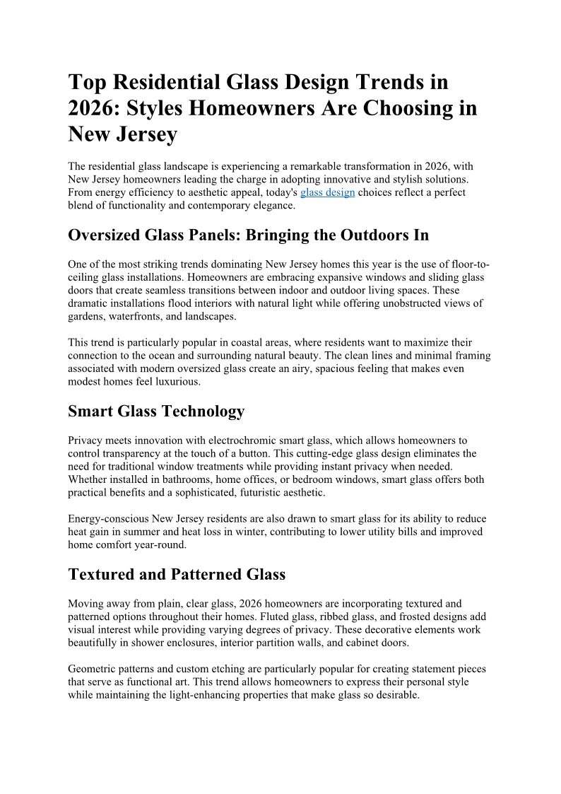 Top Residential Glass Design Trends in 2026: Styles Homeowners Are Choosing in New Jersey