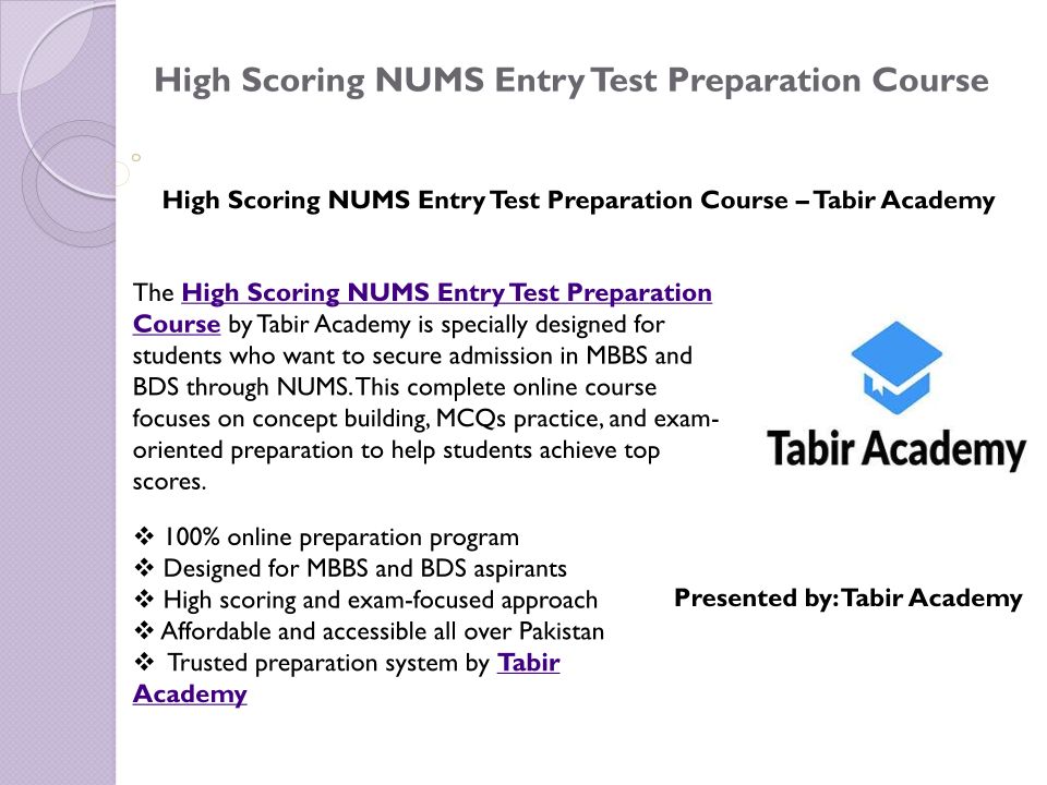 NUMS Entry Test Preparation Tabir Academy for MBBS