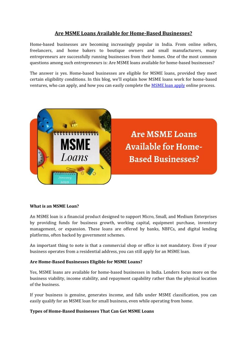 Are MSME Loans Available for Home Based Businesses