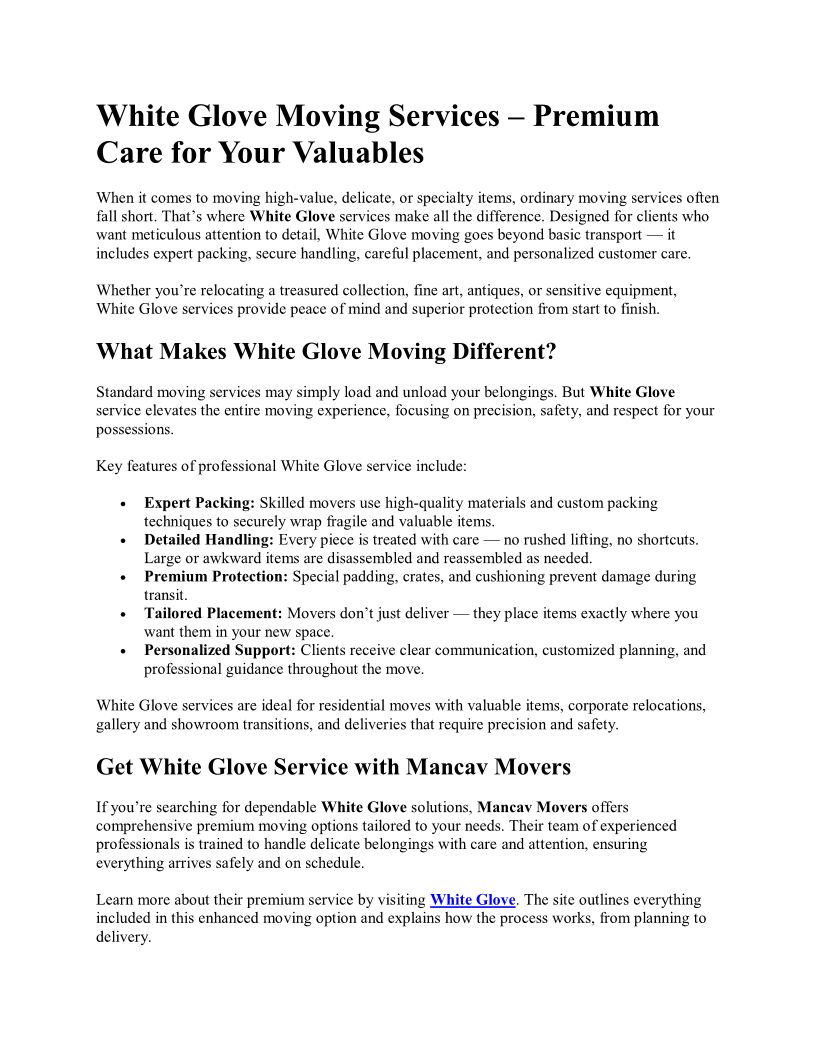 White Glove Moving Services – Premium Care for Your Valuables
