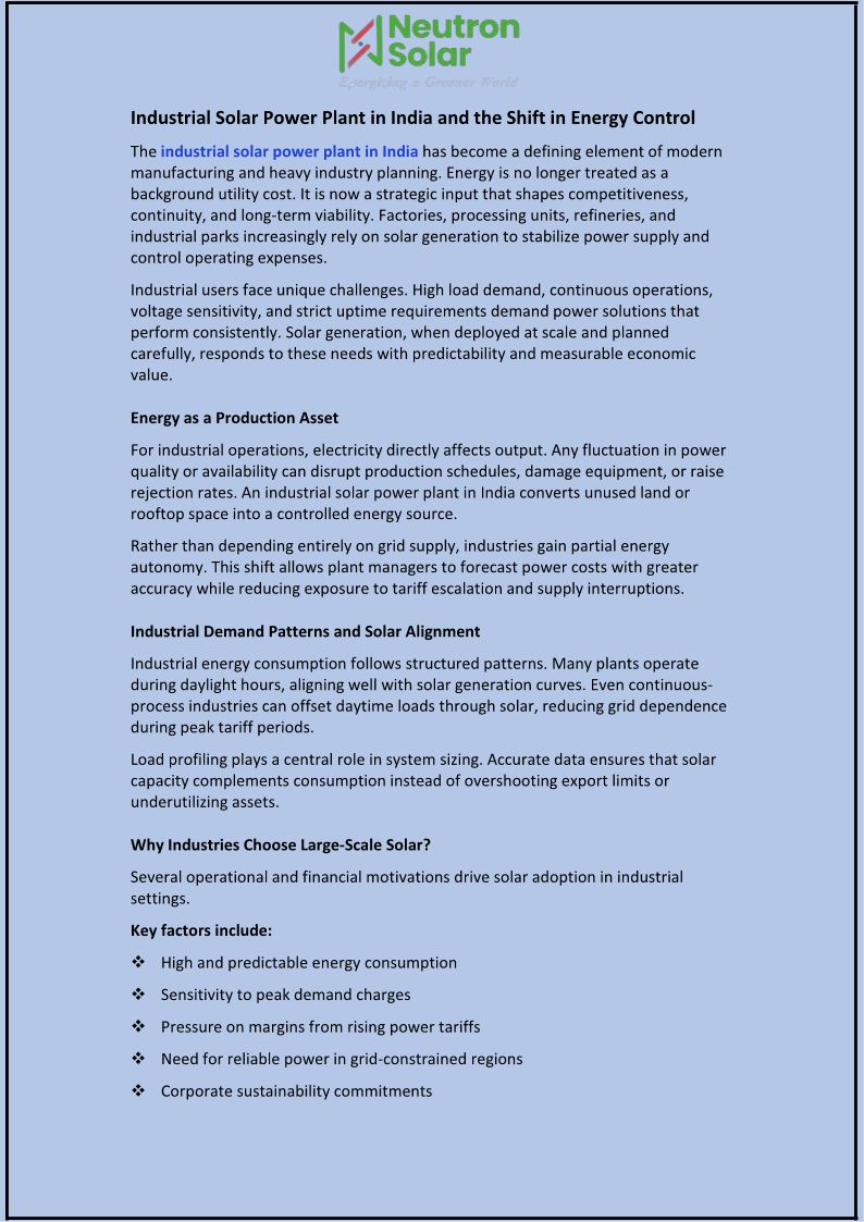 Industrial Solar Power Plant in India and the Shift in Energy Control