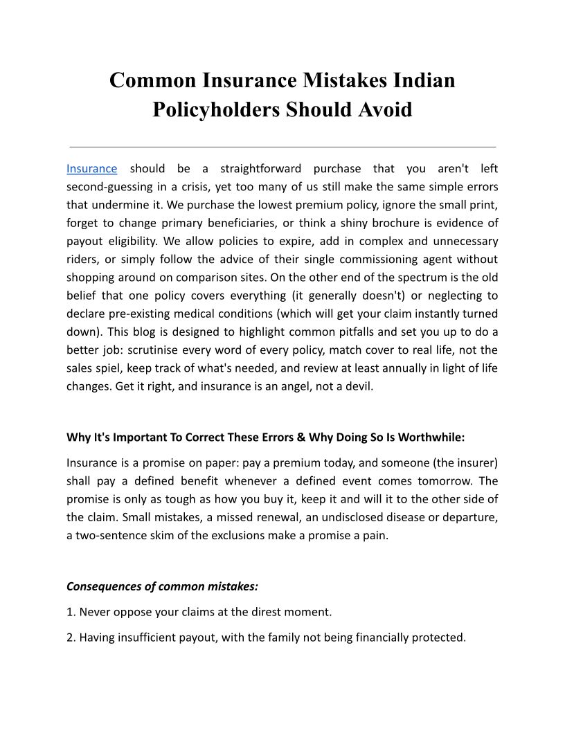 Common Insurance Mistakes Indian Policyholders Should Avoid