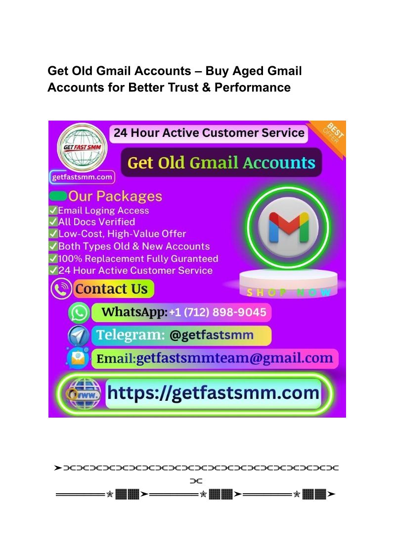 Get Old Gmail Accounts – Buy Aged Gmail Accounts for Better Trust & Performance