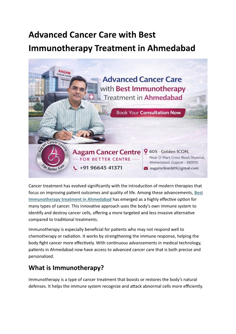 Advanced Cancer Care with Best Immunotherapy Treatment in Ahmedabad