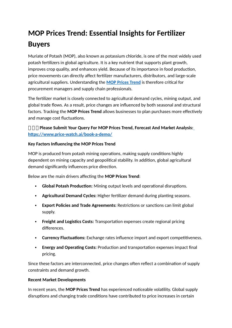 MOP Prices Trend: Essential Insights for Fertilizer Buyers