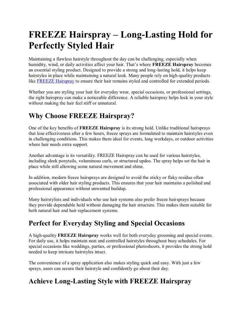 FREEZE Hairspray – Long-Lasting Hold for Perfectly Styled Hair