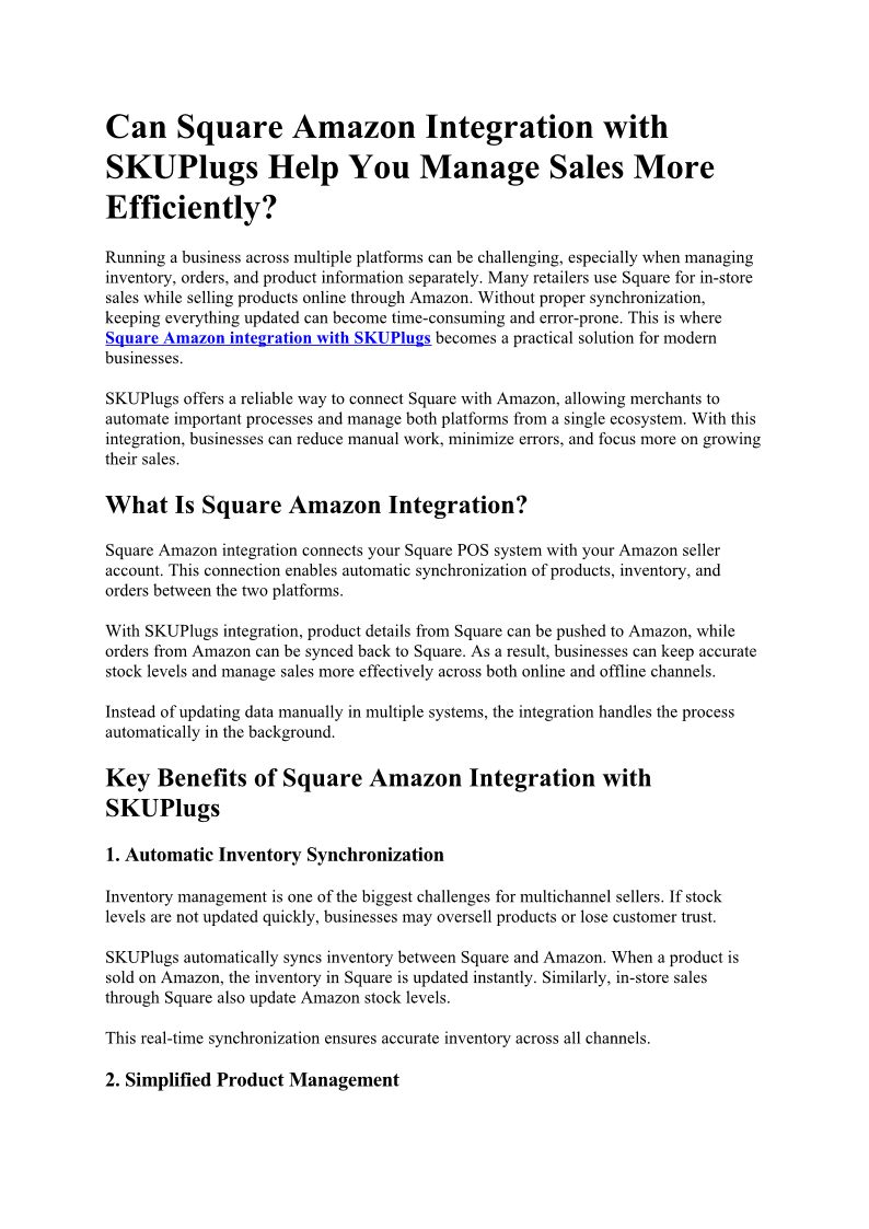 Can Square Amazon Integration with SKUPlugs Help You Manage Sales More Efficiently