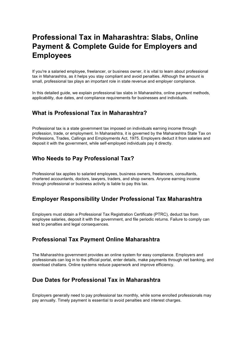 Professional Tax Maharashtra: Latest Slabs, Applicability, Returns & Penalty Rules Explained