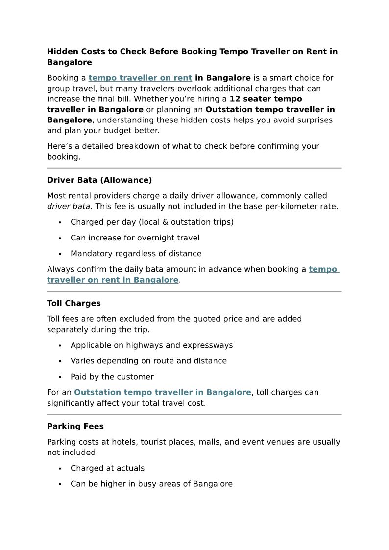 Hidden Costs to Check Before Booking Tempo Traveller on Rent in Bangalore