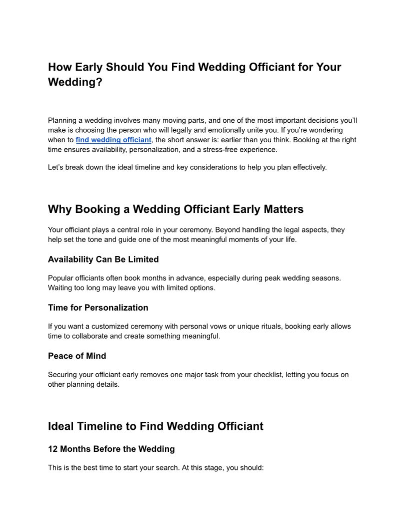 How Early to Find Wedding Officiant | Complete Wedding Planning Guide