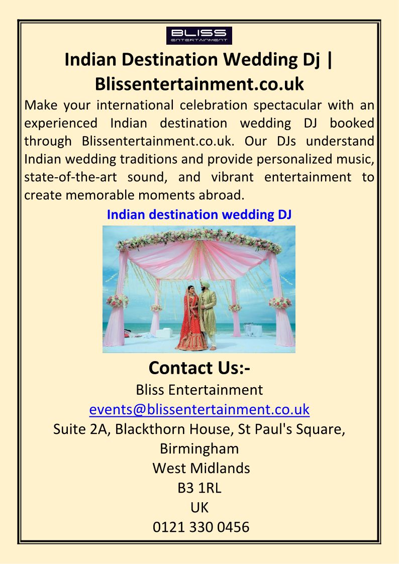 Indian Destination Wedding Dj Blissentertainment.co.uk