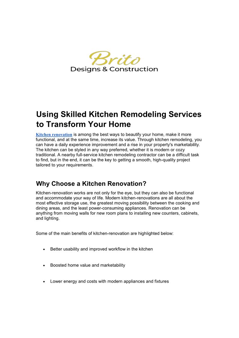 Using Skilled Kitchen Remodeling Services to Transform Your Home