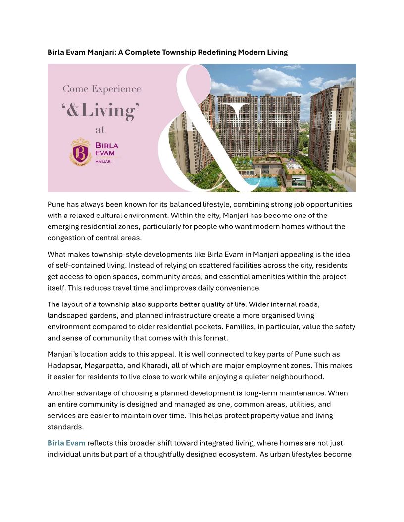 Birla Evam Manjari A Complete Township Redefining Modern Living