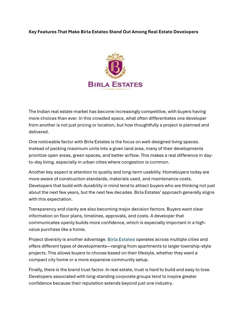 Key Features That Make Birla Estates Stand Out Among Real Estate Developers