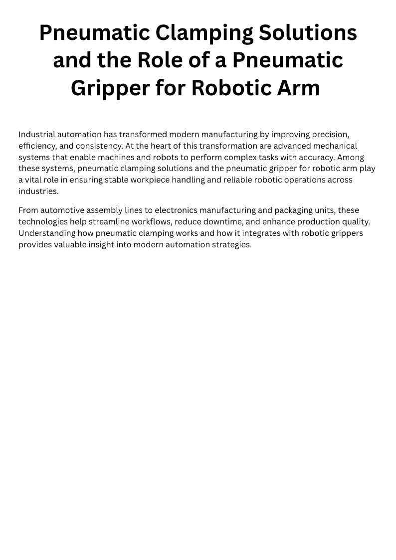 Pneumatic Clamping Solutions and the Role of a Pneumatic Gripper for Robotic Arm