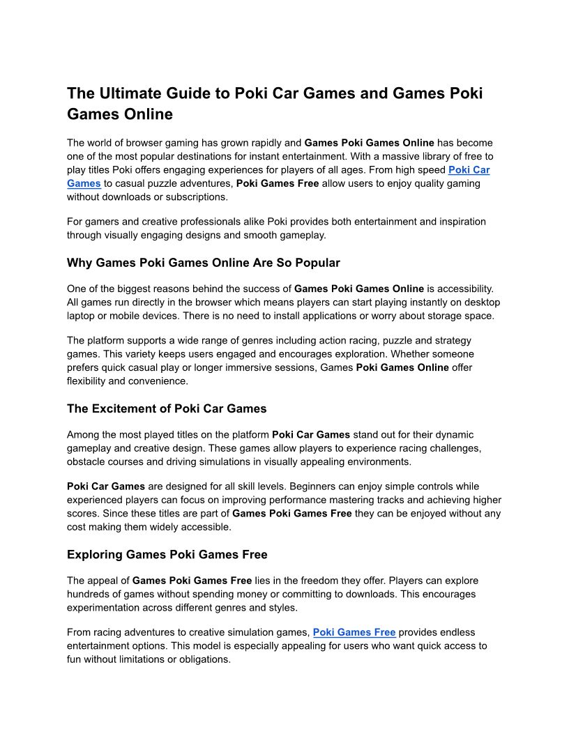 The Ultimate Guide to Poki Car Games and Games Poki Games Online