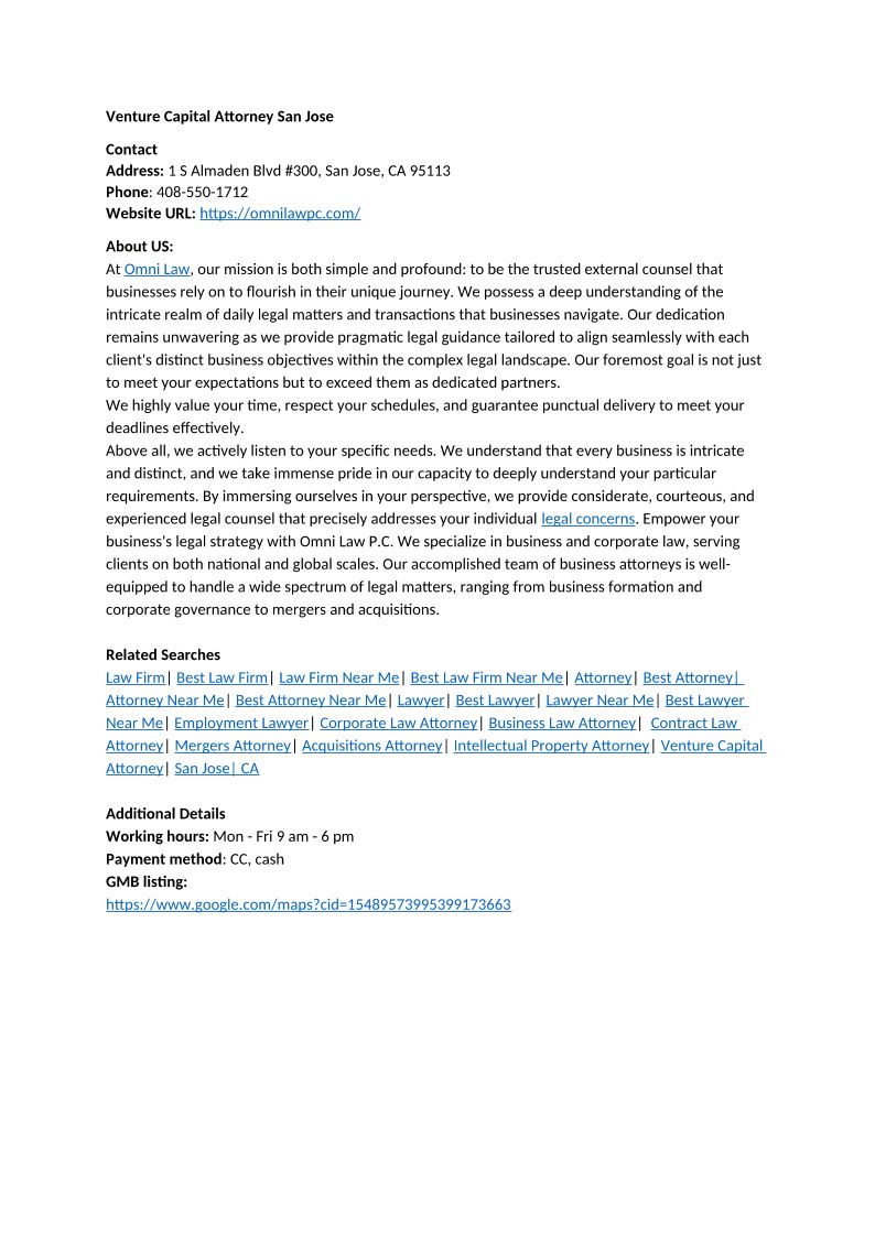Venture Capital Attorney San Jose - 1 S Almaden Blvd #300, San Jose, CA 95113