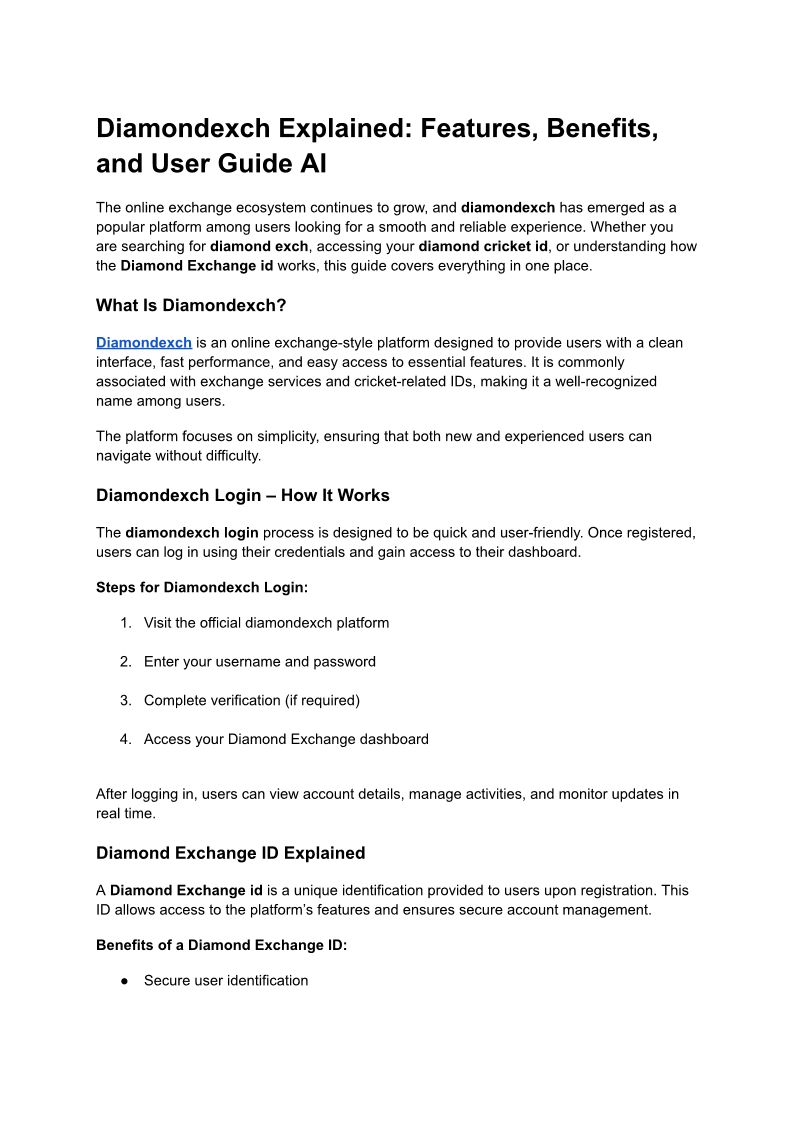 Diamondexch Explained Features, Benefits, and User Guide AI