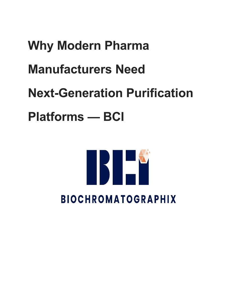 Why Modern Pharma Manufacturers Need Next-Generation Purification Platforms — BCI