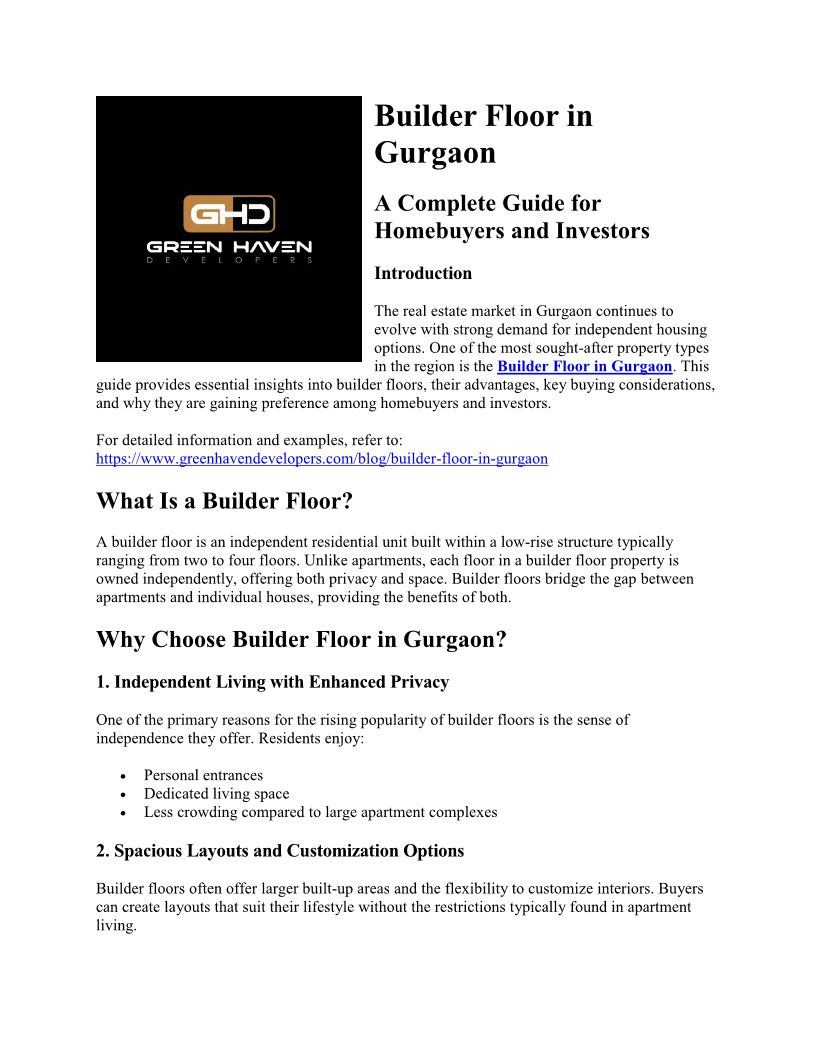 Builder Floor in Gurgaon: A Complete Guide for Homebuyers