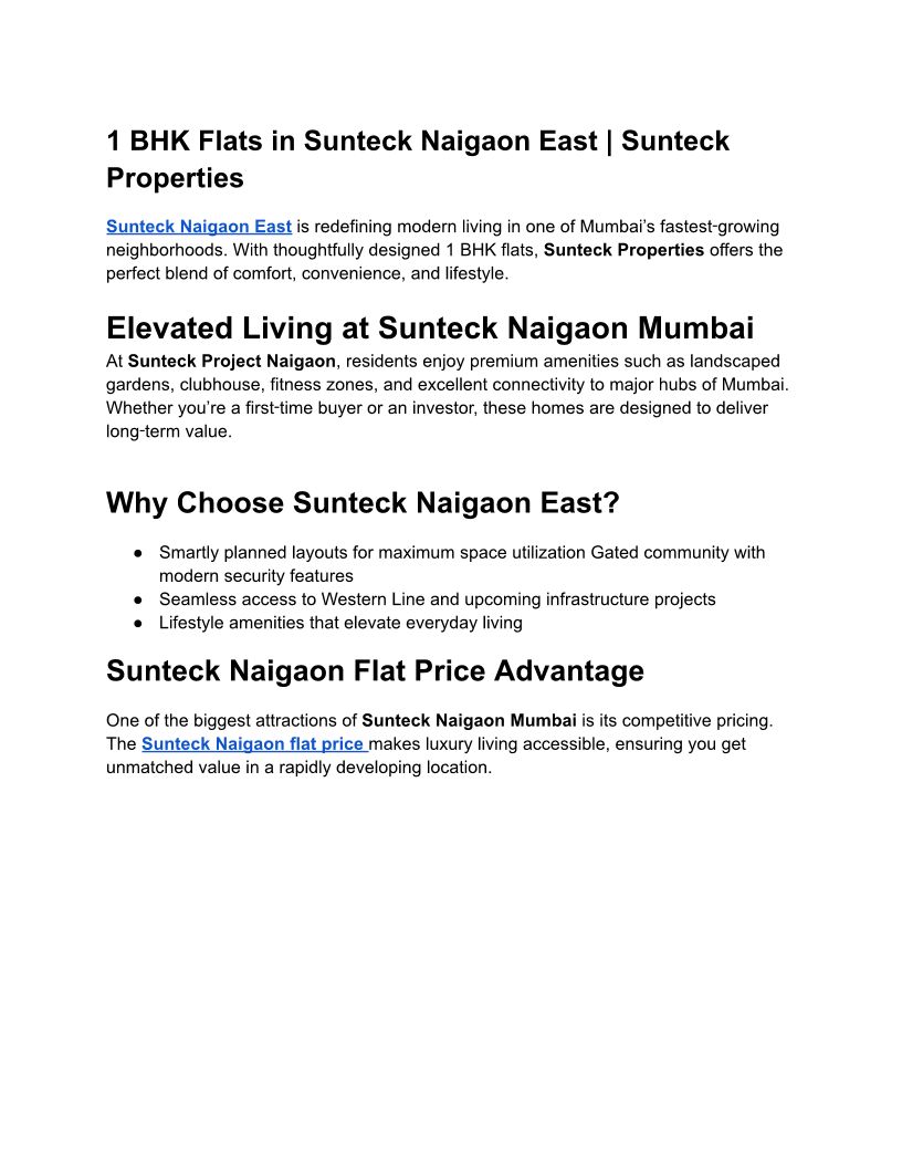 1 BHK Flats in Sunteck Naigaon East | Sunteck properties