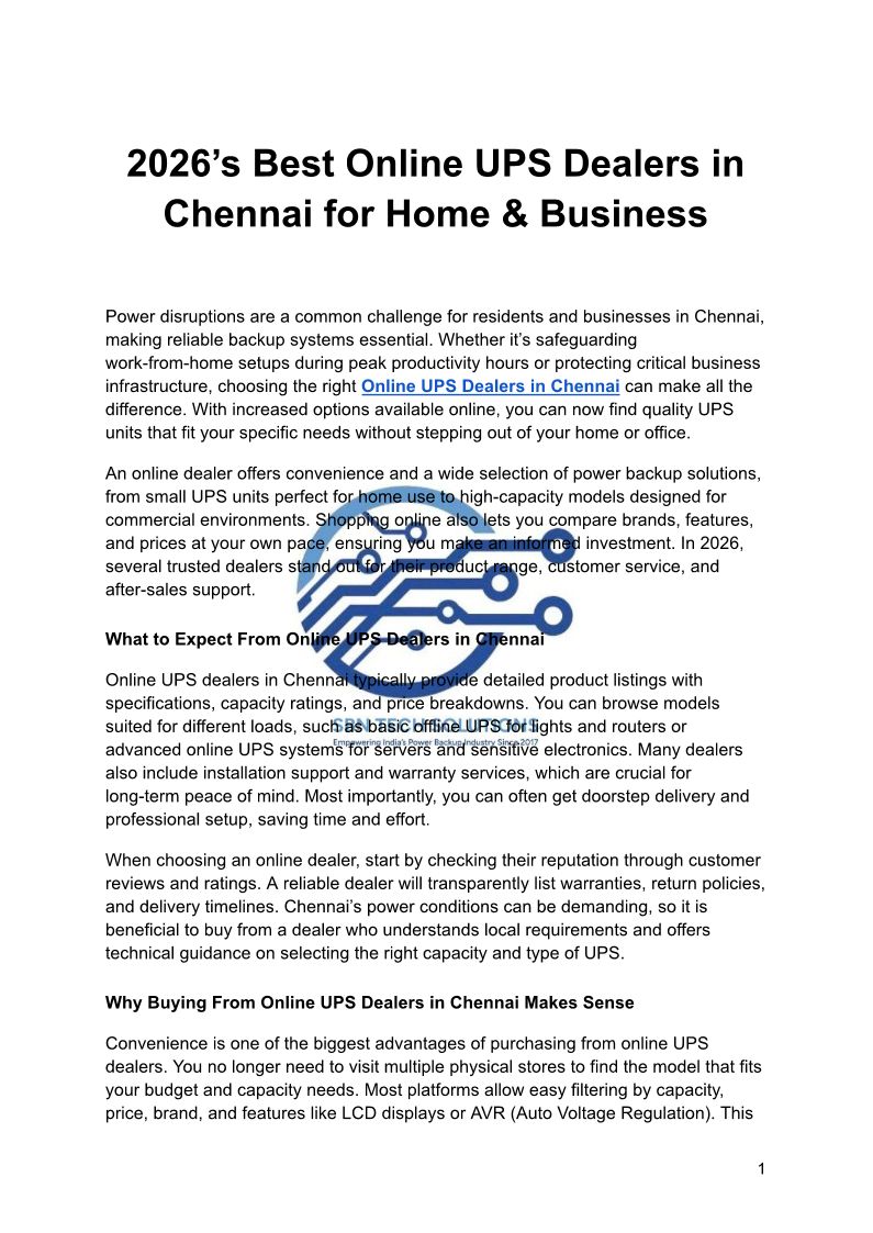 2026’s Best Online UPS Dealers in Chennai for Home & Business