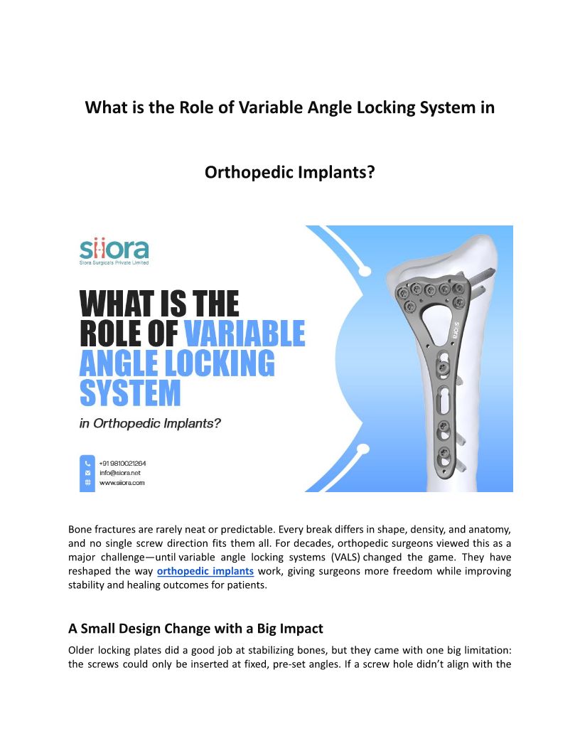 What is the Role of Variable Angle Locking System in Orthopedic Implants