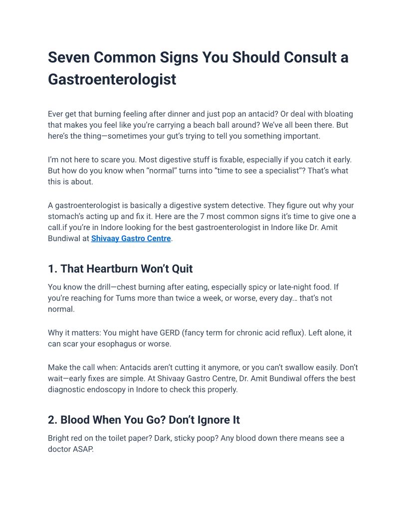 Seven Common Signs You Should Consult a Gastroenterologist