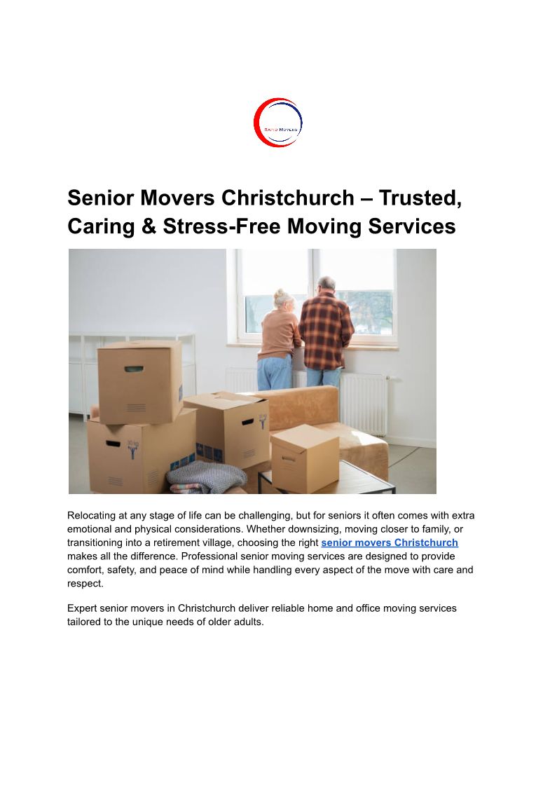 Senior Movers Christchurch – Caring & Reliable Home and Office Moving Services