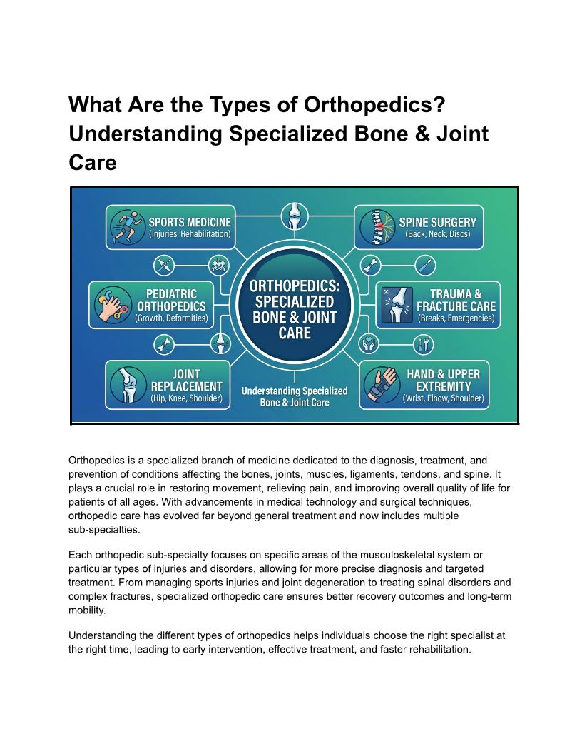 Types of Orthopedics: Understanding Specialized Bone & Joint Care in PCMC