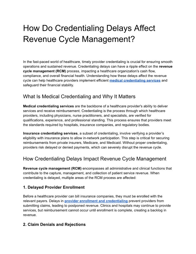 How Do Credentialing Delays Affect Revenue Cycle Management