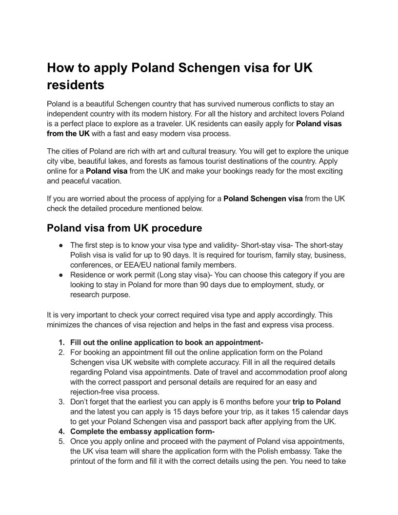 How UK Residents Can Apply for a Poland Schengen Visa – Step-by-Step Guide