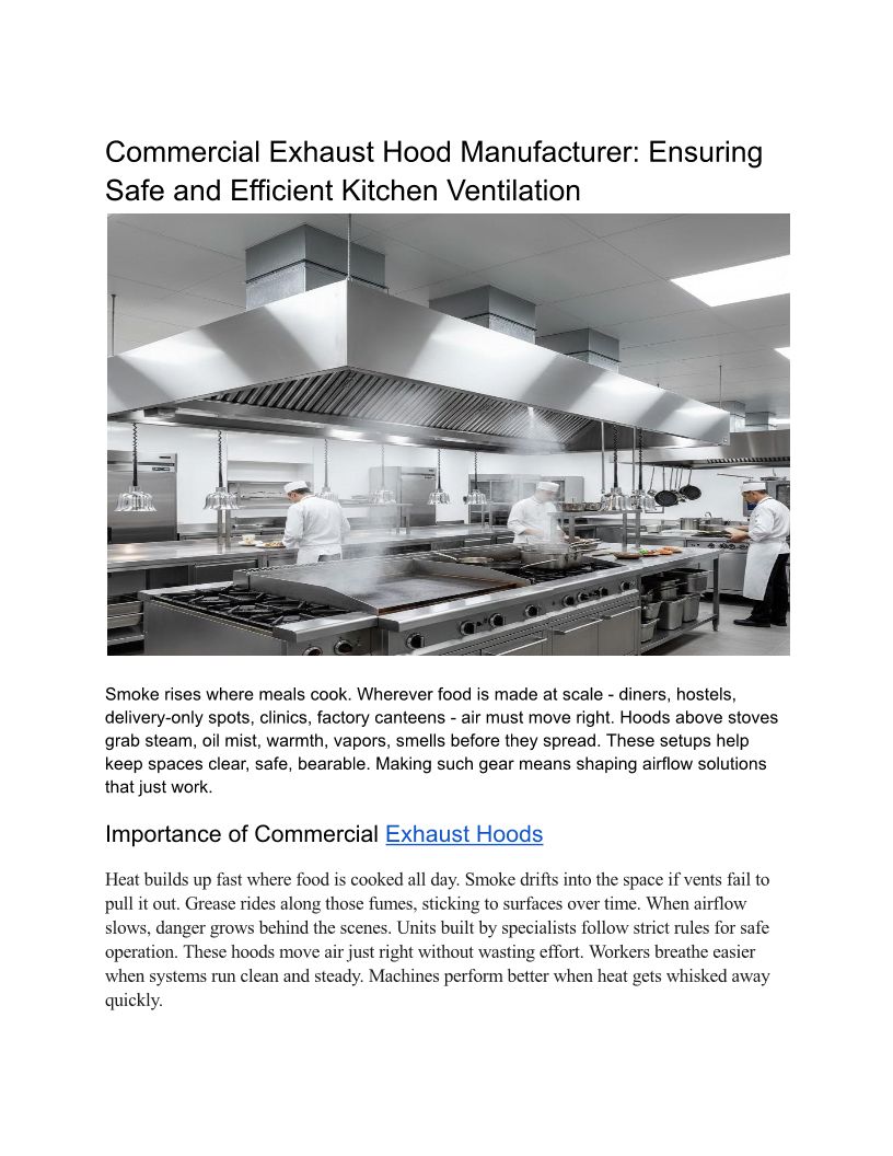 Commercial Exhaust Hood Manufacturer for Advanced Kitchen Ventilation Solutions