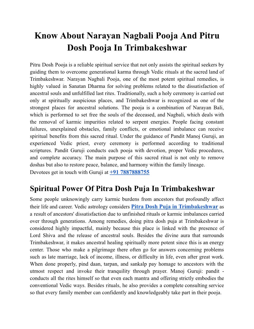 Know About Narayan Nagbali Pooja And Pitru Dosh Pooja In Trimbakeshwar
