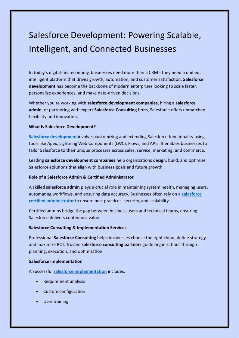 Salesforce Development: Powering Scalable, Intelligent, and Connected Businesses