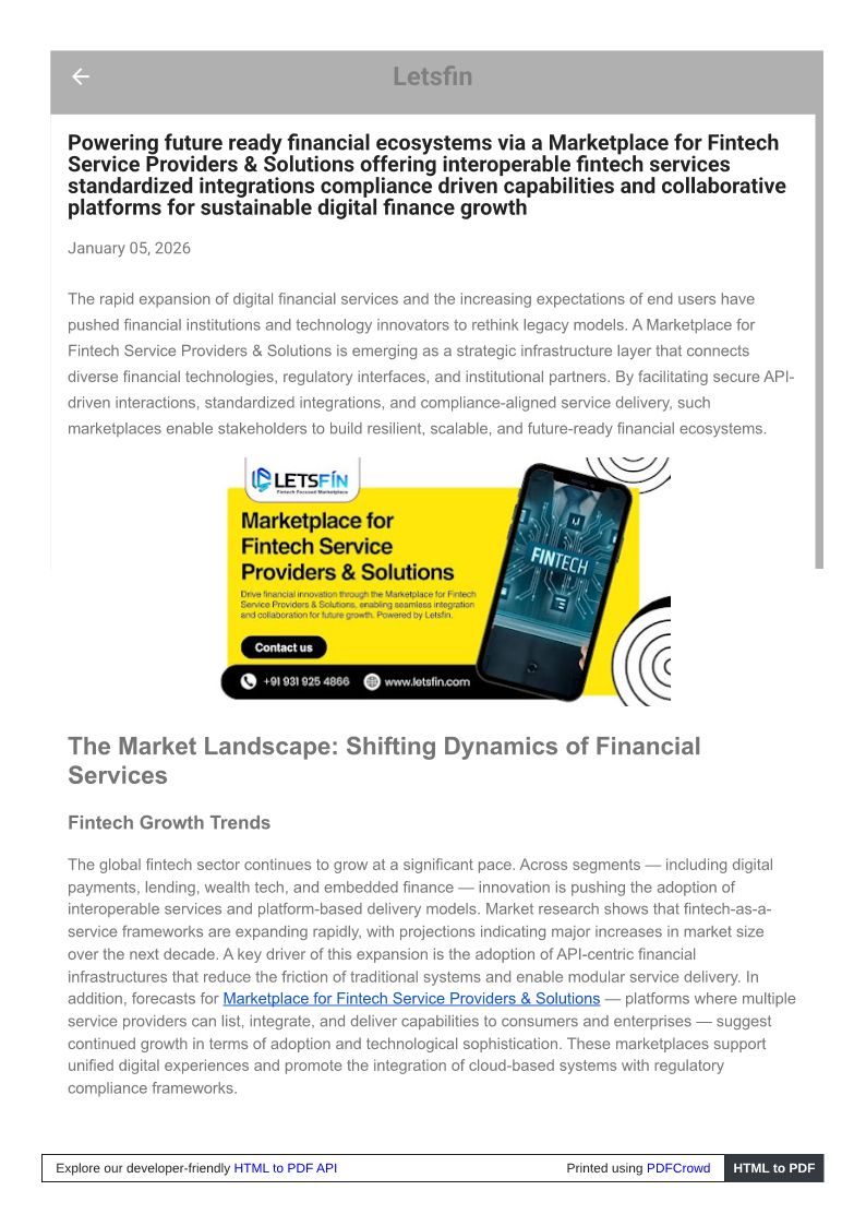 Driving ecosystem led finance using Marketplace for Fintech Service Providers & Solutions