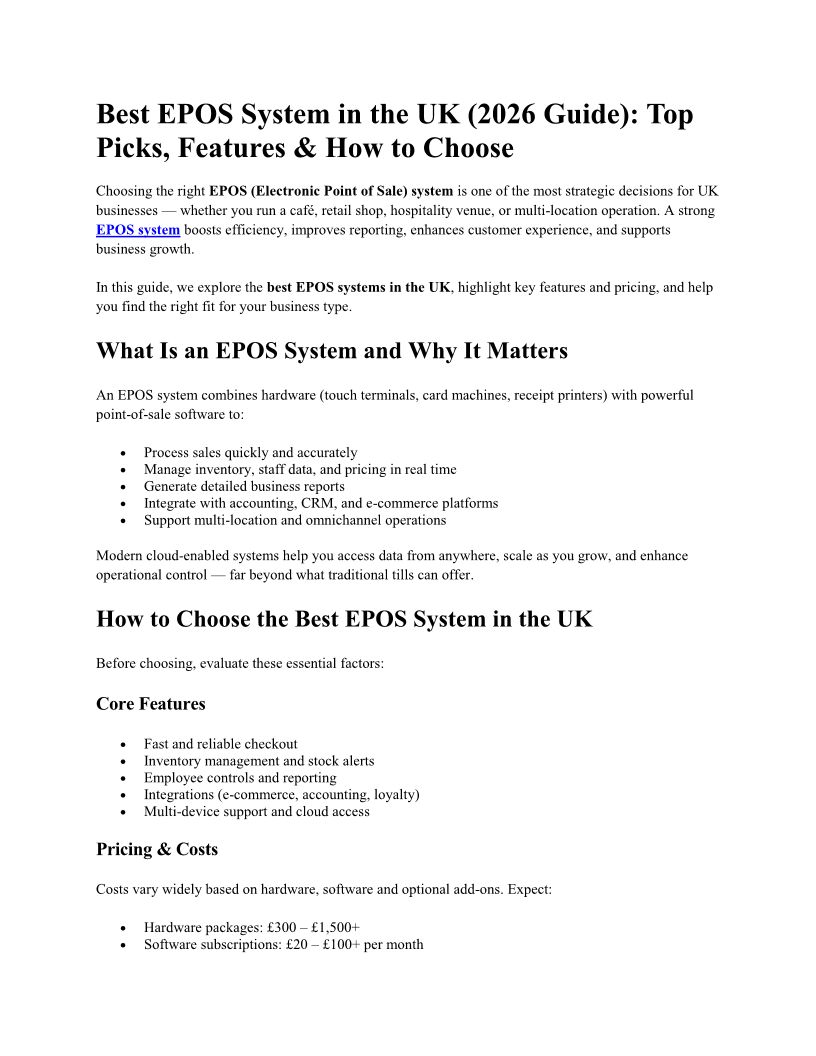 Best EPOS System in the UK (2026 Guide) Top Picks, Features & How to Choose