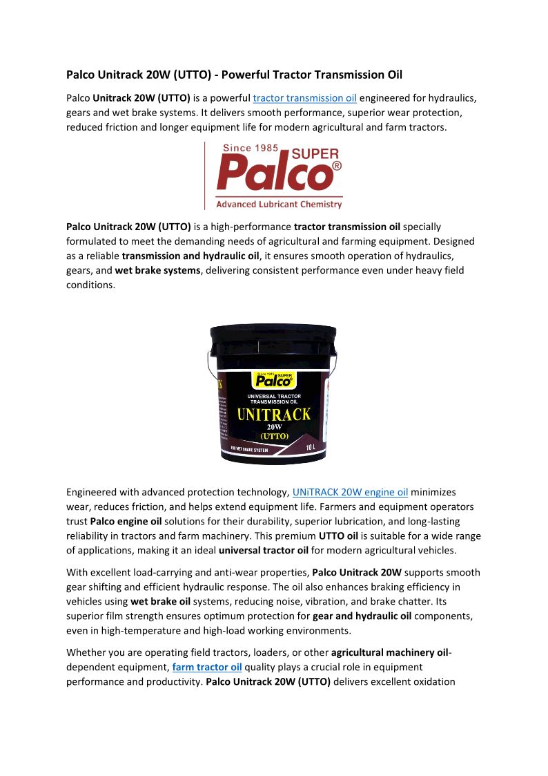 Palco Unitrack 20W (UTTO) - Powerful Tractor Transmission Oil